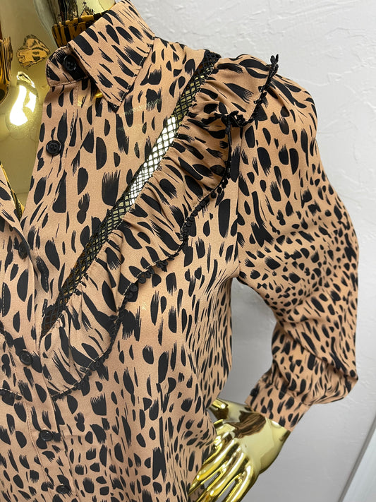 FULL TIME - Multicolor Abstract Print Lantern Sleeve Casual Shirt