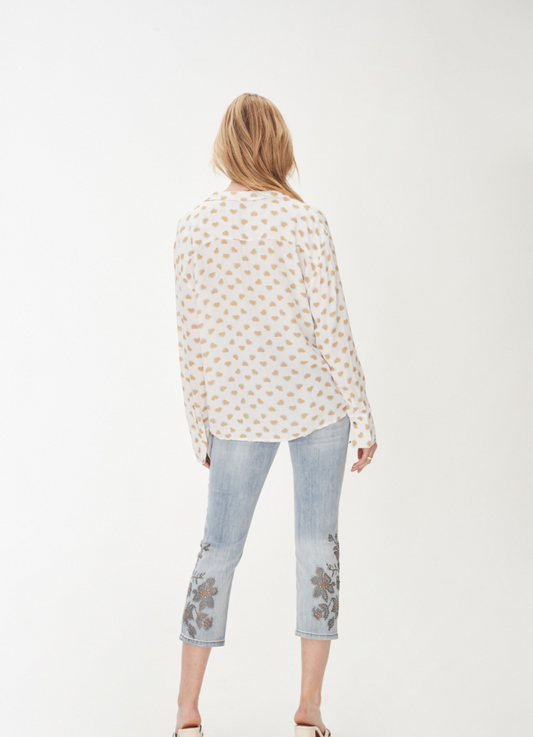 FDJ- Printed Long Sleeve Heart Top in Scattered Heart