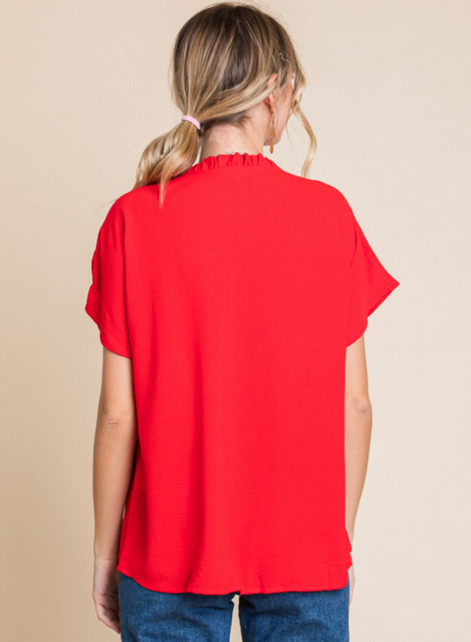 Jodifl- Slit Neck Top with Dolman Short Sleeves in Red