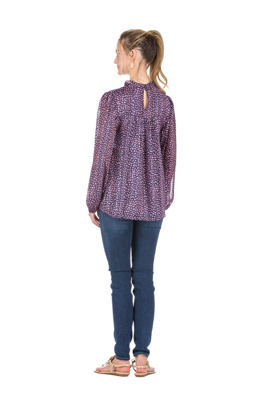 JADE- TWIST NECK TOP IN NAVY PINK PATTERN