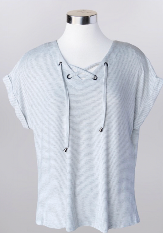 Keren Hart- Tie Neck Detail Stripe Knit Top