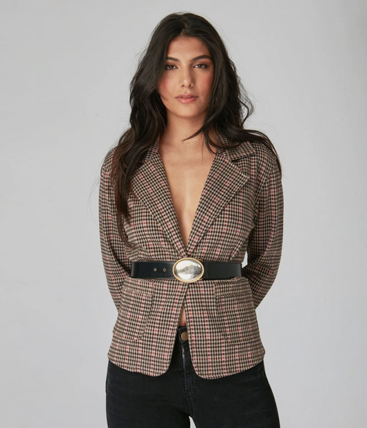 Lola Jeans- Gia Knitted Blazer in Jaquard Gingham