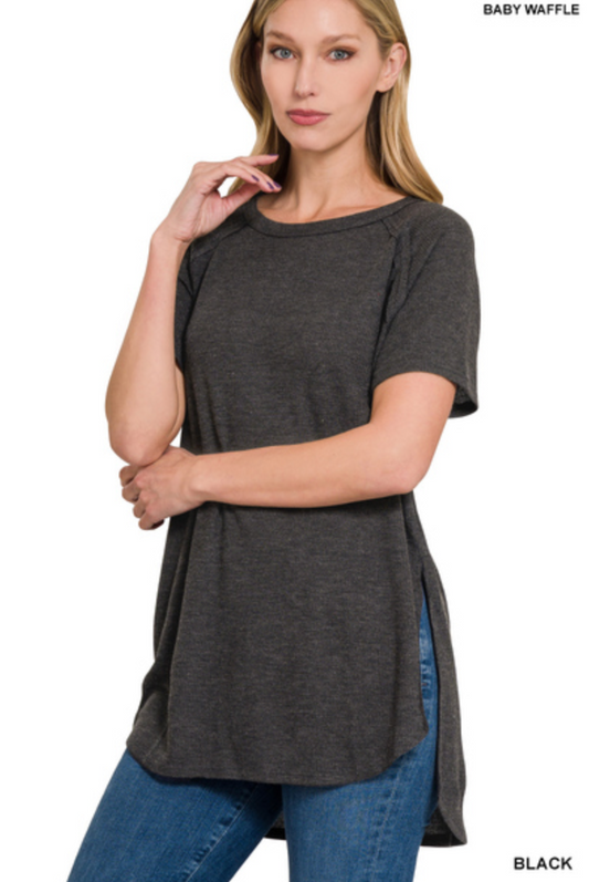 Zenana- Melange Baby Waffle Short Sleeve Top