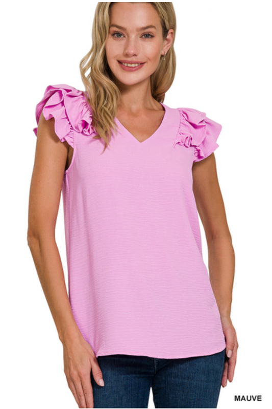 Zenana- Tiered Ruffle Sleeve Top in Assorted Colors