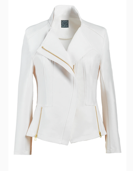 Clara Sun woo- Liquid Leather Knit Jacket with Hem Zip Details