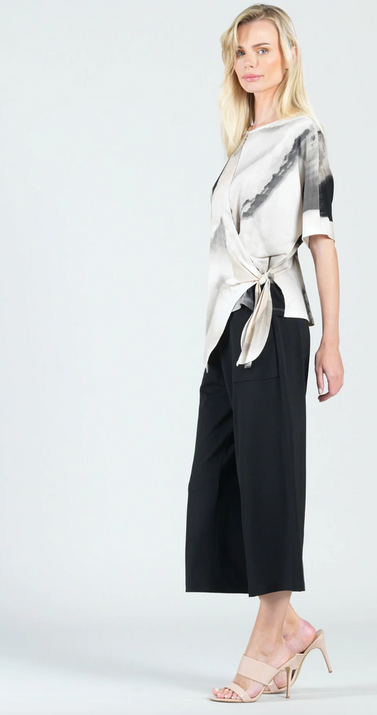 Clara Sun Woo- Side Tie Wrap Top - Taupe Watercolor