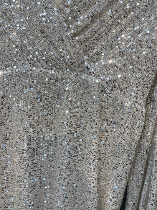 Apricot- Long Sleeve Sequin Dress with Cross Front in Stone