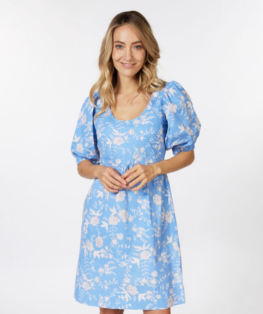 Esqualo- Puff Sleeve Dress in Blue Flower
